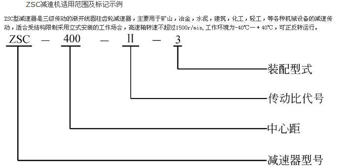 ZSC減速機適用范圍 ZSC型減速器是三級傳動的漸開線圓柱齒輪減速器,主要用于礦山,冶金,水泥,建筑,化工,輕工,等各種機械設備的減速傳動,適合受結構限制采用立式安裝的工作場合,高速軸轉速不超過1500r/min,工作環境為-40℃—+40℃,可正反轉運行。 ZSC(A)320~1000。 ZSC(A)型為立式套裝 式漸開線圓柱齒輪減速機。