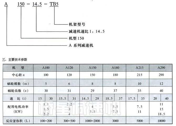 1、本系列減速機為兩級減速傳動,第一級為帶動傳動,第二級為阿基米德圓柱蝸桿蝸輪傳動。其特點有:結構緊湊,傳動比大,工作平穩可靠、噪音低,在蝸桿螺線導程角小的情況下減速機還具處自鎖性。根據蝸輪蝸桿嚙合時的中心距,將產品分為A100、A120、A150、A180、A215、A290六種。