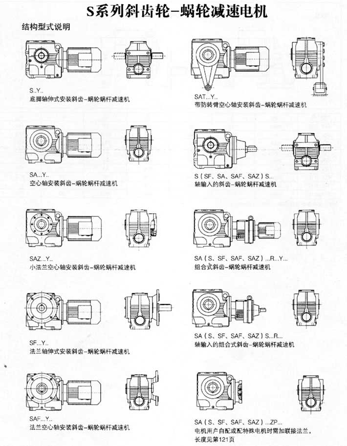 1、S系列斜齒輪-蝸輪蝸桿減速電機具有很高的科技含量,有斜齒輪與蝸輪蝸桿結合一體傳動,提高該機力矩與效率。該系列產品規格齊全,轉速范圍廣,通用性好,適應各種安裝方式,性能安全可靠壽命長,實施了國際標準要求。