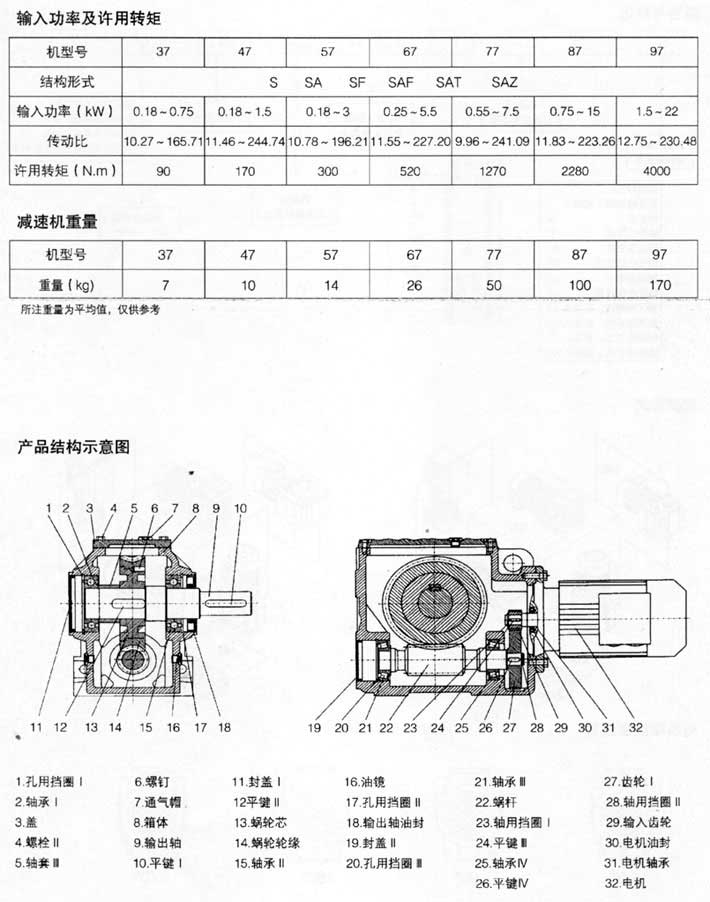 1、斜齒輪和蝸輪組合,結構緊湊,減速比大。