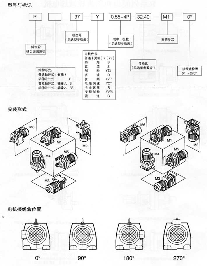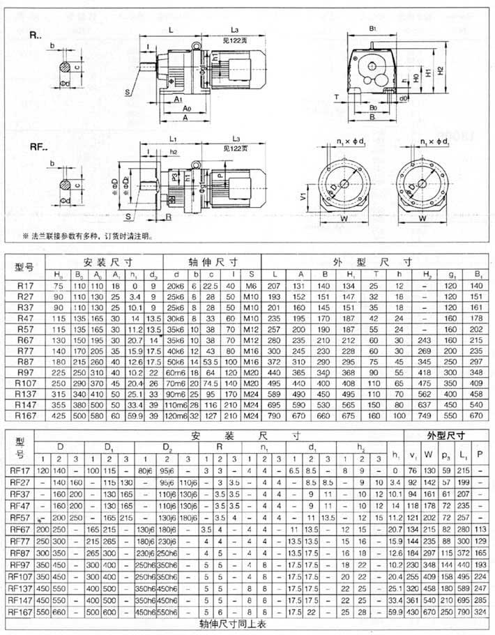 R…F:底腳法蘭安裝  RM: 法蘭安裝帶加長軸承箱