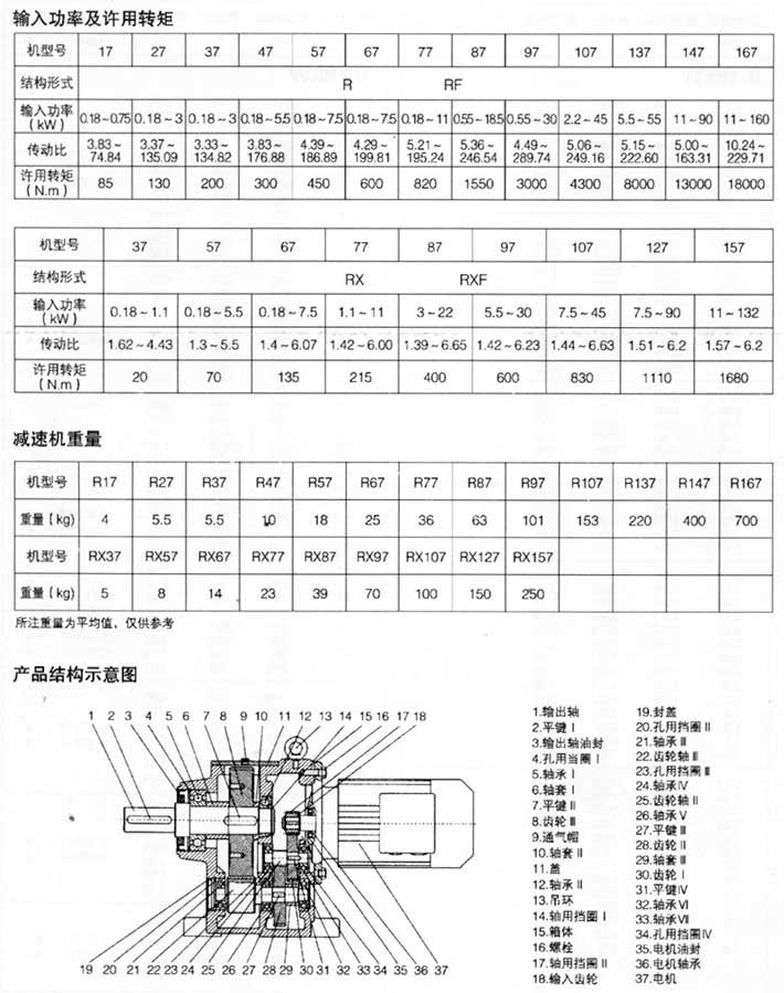 速比范圍:R基本型3.33~289.74,RX型1.3~8.65,R/R組合型可達到27001