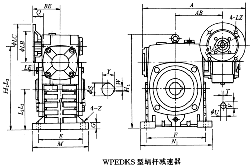 WPEDKS型蝸桿減速器主要尺寸 /mm