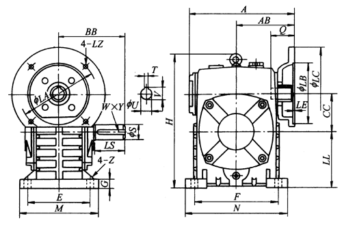 WPDS50、WPDS60、WPDS70、WPDS80、WPDS100、WPDS120、WPDS135、WPDS155、WPDS175、WPDS200、WPDS250、型WPDS型蝸輪蝸桿減速機(jī)的減速器主要尺寸